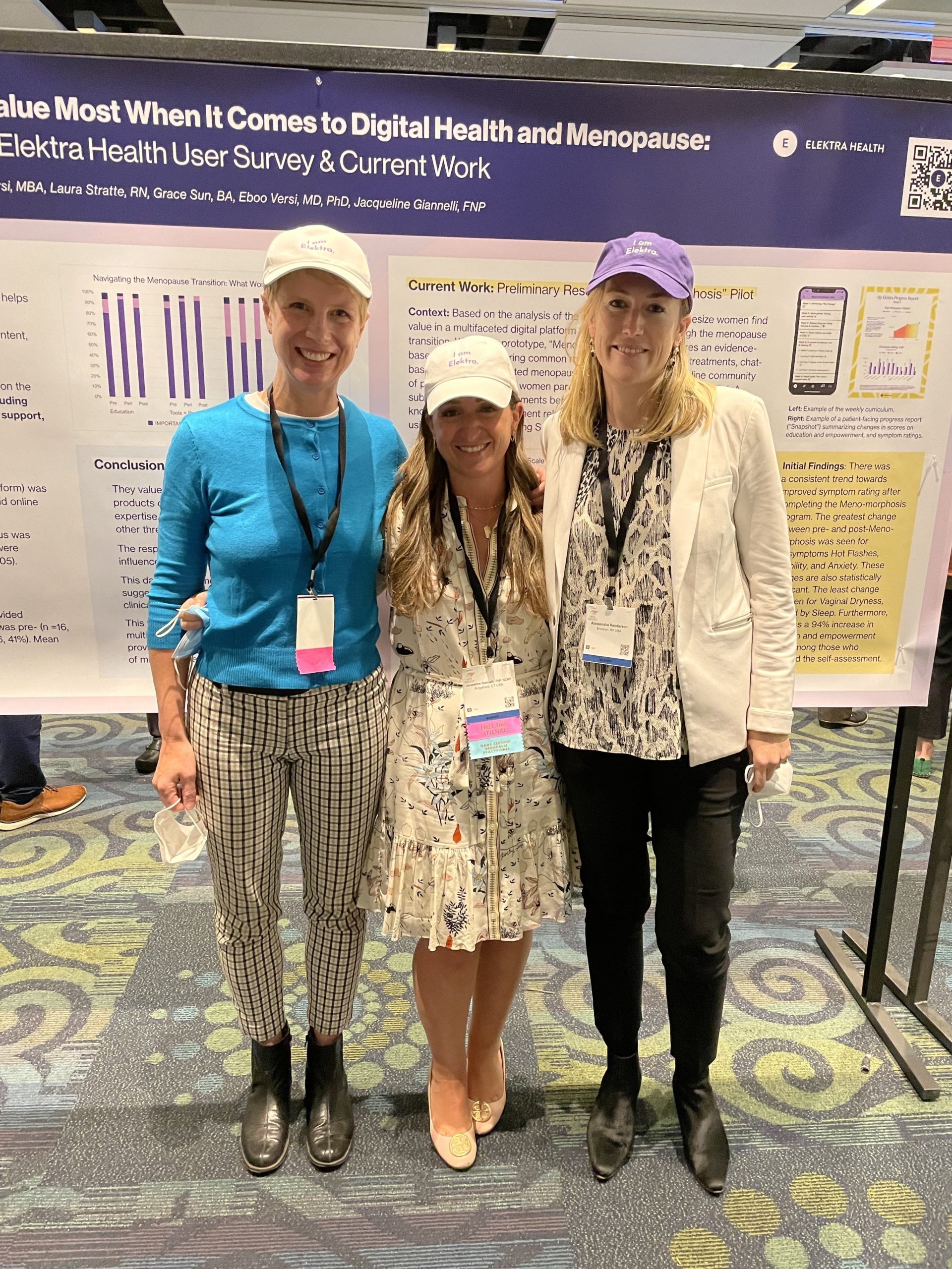 The Elektra Team in front of our scientific poster which we presented at this year’s NAMS conference on what women value the most when it comes to digital health and menopause.