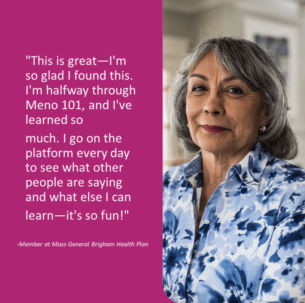 We’re proud to help change that, arm in arm with the forward-thinking leadership at Mass General Brigham Health Plan and EmblemHealth. These are leaders who go beyond the talking points to meaningfully invest in their communities – beneficiaries and employees – and make good on their commitments to inclusive support for women’s health and wellbeing across the lifespan. It is both the right thing to do, and the smart thing to do for population health.